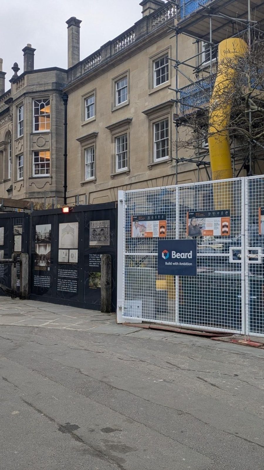 Nearby, an 1820s building is being refurbished with a new through-floor lift at varying levels, significantly improving accessibility across the quad and college.