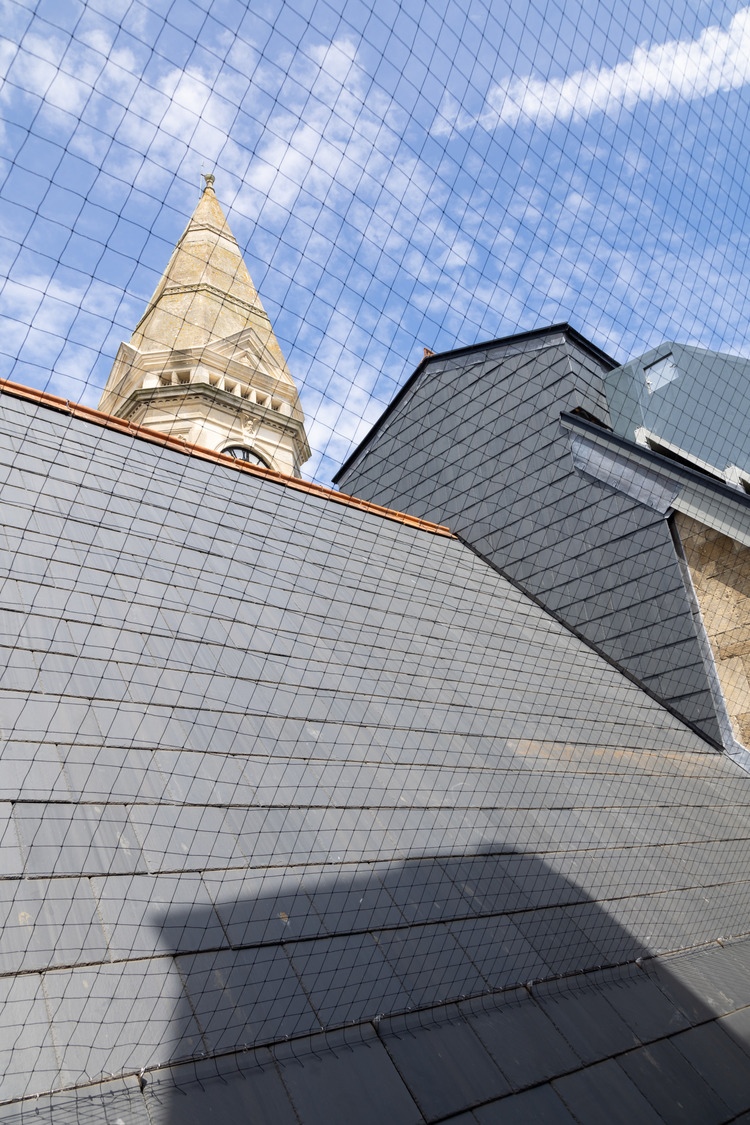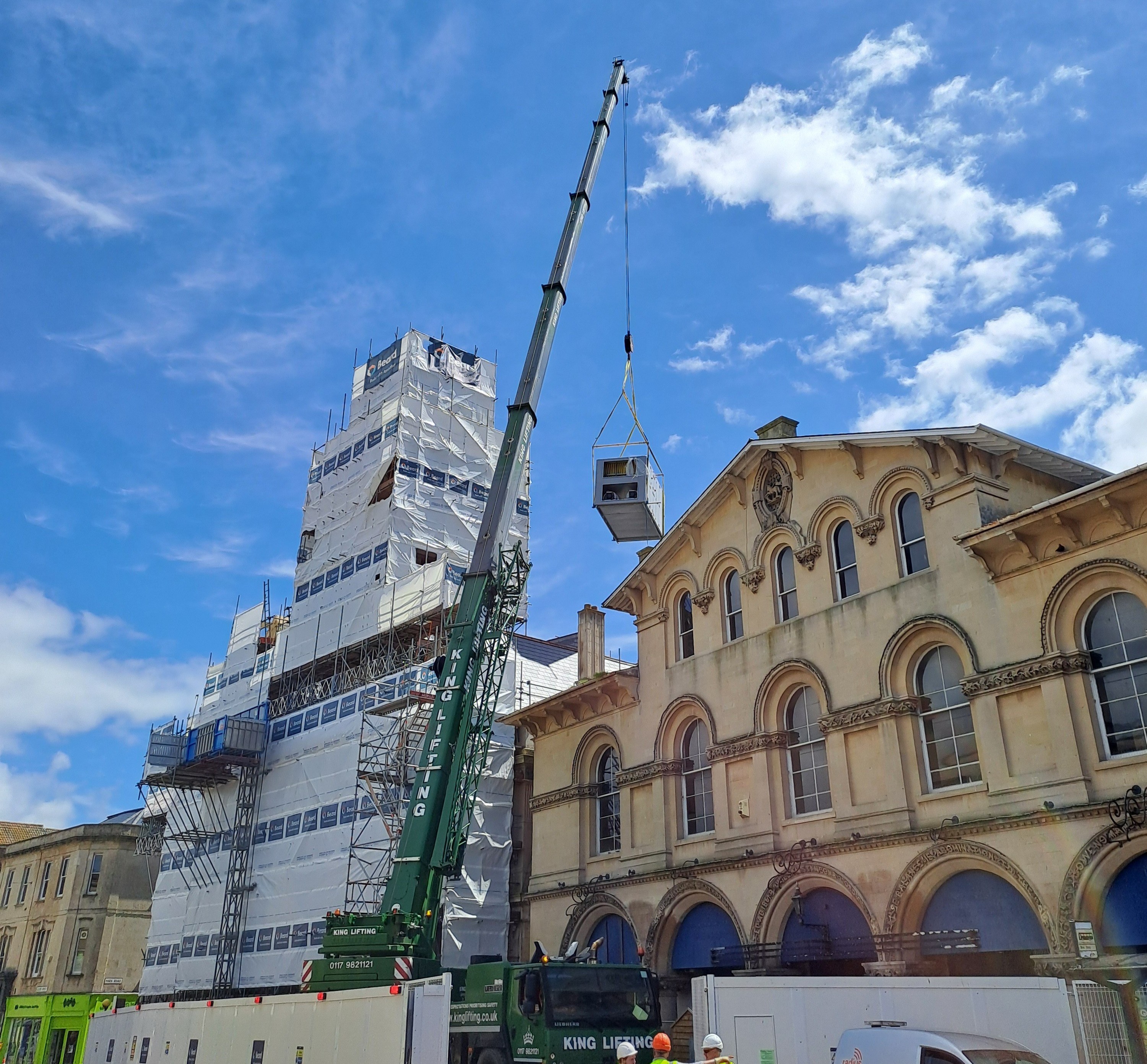 We were unable to use a forklift to load materials to the roof. A hoist was installed and materials were cut to size on the ground at the front of the building, taken up in the hoist and then manoeuvred around the roof. This was the same process for all areas of the roof, adding a level of complexity and sequencing.