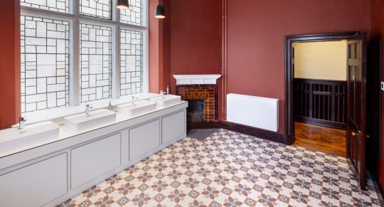 A number of original stone features were uncovered and repaired, including keystones in the Great Hall which have been revealed and repaired. Decorative cornices have been repaired and extended where required to ensure any new works are in keeping with the original building.